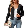 Женский вязаный кардиган с V-образным вырезом и длинными рукавами больших размеров с деревянными ушками