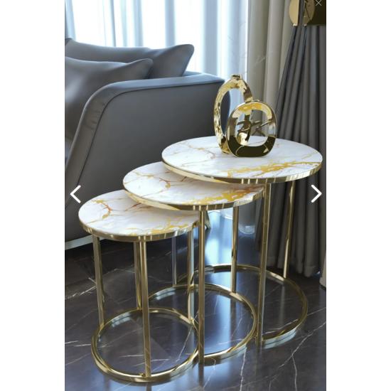 3-местный журнальный столик Ceylin с металлической ножкой золотого цвета, небьющееся стекло с желтым мраморным рисунком