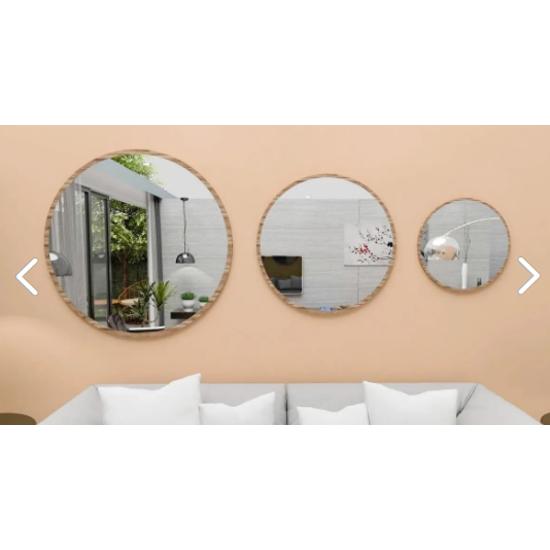 Зеркало декоративное, круглое зеркало из 3 предметов, орех Кеменче, орех, ванная комната, гостиная, прихожая, кухня, стена, офис, ванная комната