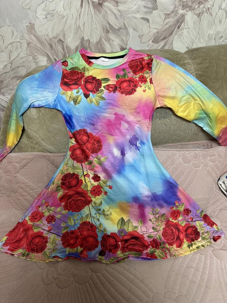 Ставлю 4 . Талия узкая, книзу расклещенная. Я думала, что можно на выход, но на выход нельзя. Сказала внучке, чтобы носила дома. С материалом ничего не будет, хоть каждый день стирайте. И рукава слишком длинные. А продавцу спасибо, что собрала заказ. Девочки, дополняю свой отзыв. После первой недели носки, закашлатился, вылинял. Не стоит этих ожиданий и денег. Тем более прислали в талии не отрезное. На фото красиво. Не советую.
