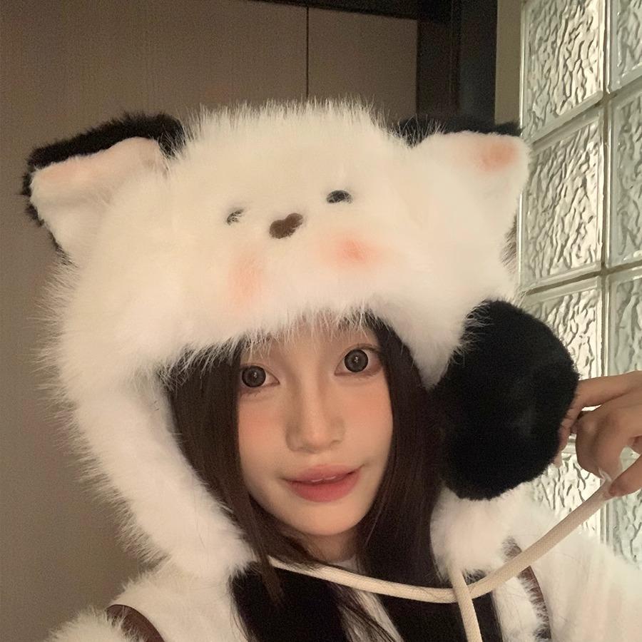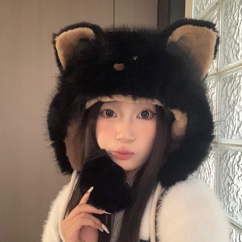 Милая плюшевая шапка из лисьего меха для женщин, осень и зима, утолщенная, теплая, для защиты ушей, кепка Lei Feng, для верховой езды, лыжная кепка Tide