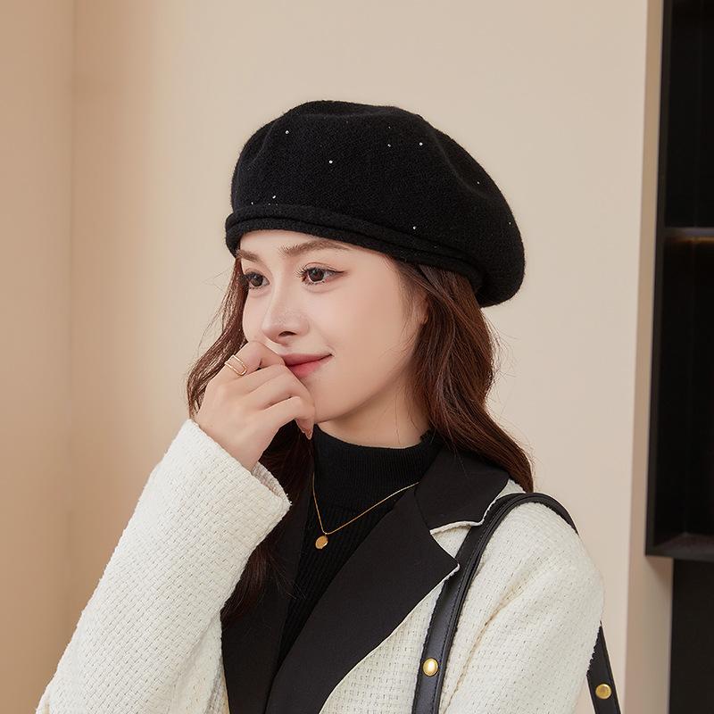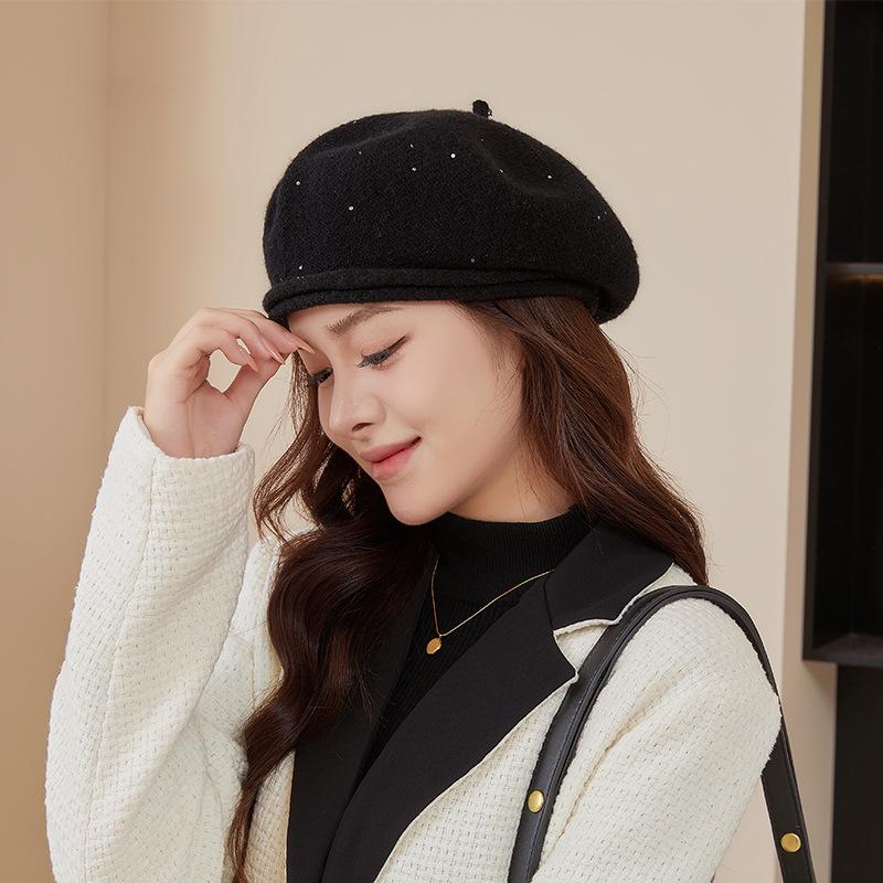 Женский берет, классическая французская шляпа - элегантный черный шерстяной берет для вечеринки, романтического французского тематического наряда