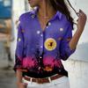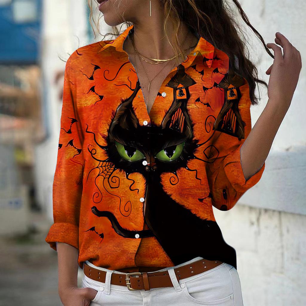 Черная кошка с принтом женская блузка весна осень женская офисная женская рубашка на пуговицах с отложным воротником