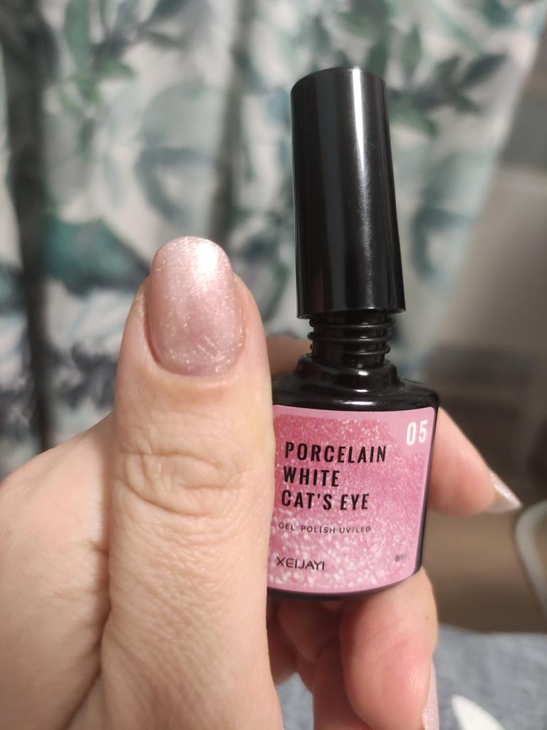 Гель-лак Кошачий глаз в восьми светлых оттенках Давно хотела именно светлый оттенок кошачьего глаза. Долго сомневалась, выбирала между тоннами 03, 04, 05. И остановилась на среднем между ними 04. Я ожидала чуть более розовый оттенок. Возможно, влияет цвет базы, у меня - обычная прозрачная, и количество слоёв, я нанесла один слой. Цвет получился нейтральный, не броский, естественный. Кисть стандартная, удобная. Лак наносится без проплешин. С помощью специального магнита в зависимости от его формы можно создать эффекты перелива и объёма. Проблем с сушкой не было. За 10 дней сколов в маникюре не появилось. Лак могу рекомендовать. Личный промокод на скидку 5% на любые товары joom: U79337VSRY. Приглашаю в мой телеграм-канал followmekanal за актуальными промокодами.