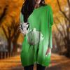 Новинка осени. Платье больших размеров с принтом свежей лилии. Женское повседневное платье с круглым вырезом и длинными рукавами. Платья с карманами.