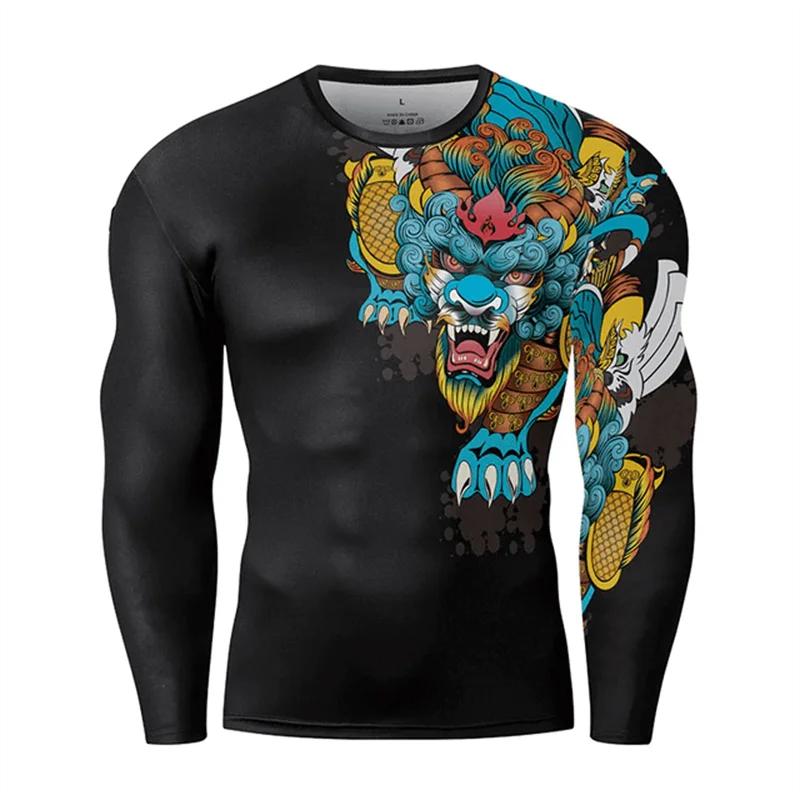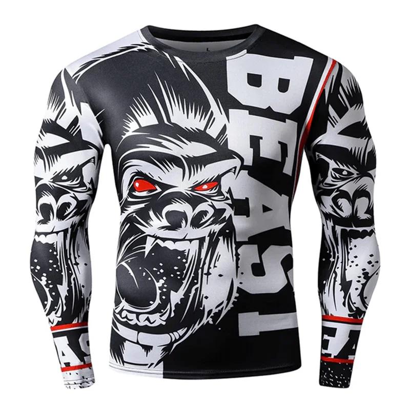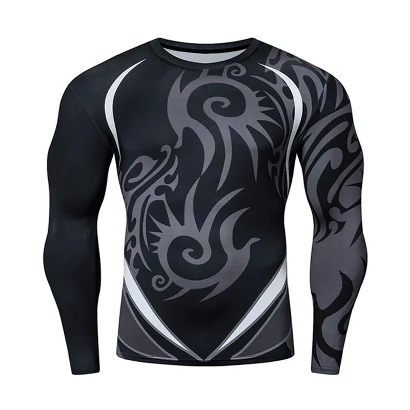Мужская летняя осенняя повседневная футболка с длинным рукавом и 3D-принтом, черная облегающая мужская футболка с круглым вырезом, футболка с рисунком для фитнеса Hombre Ropa