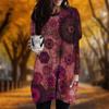 Новинка осени античный калейдоскоп принт плюс размер платье женщины O-образный вырез длинные рукава повседневные карманные платья