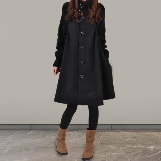 Элегантный силуэт: Выделитесь уникальным дизайном этой куртки, напоминающей накидку, излучающей элегантность и изысканность.. Высокий воротник, длинные рукава и однобортная застежка на пуговицы подчеркивают общий силуэт, делая его модным аксессуаром, подходящим для любого случая.