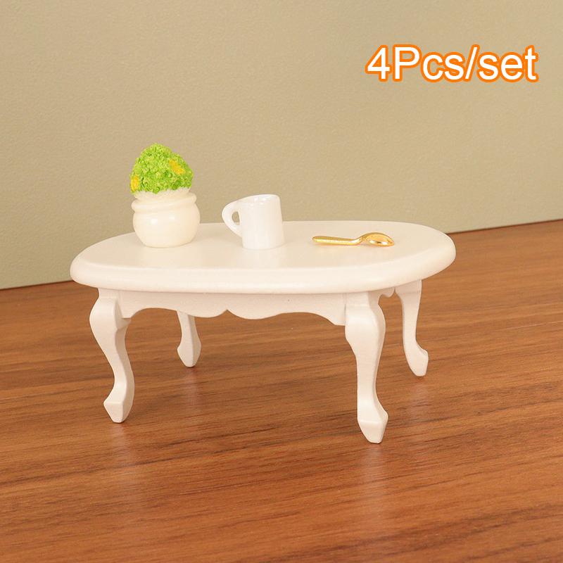 4 шт. 1:12 кукольных миниатюрных европейских овальных столов, кофейных чашек, ложек, мини-обеденный столик, модель журнального столика, мебель, декор