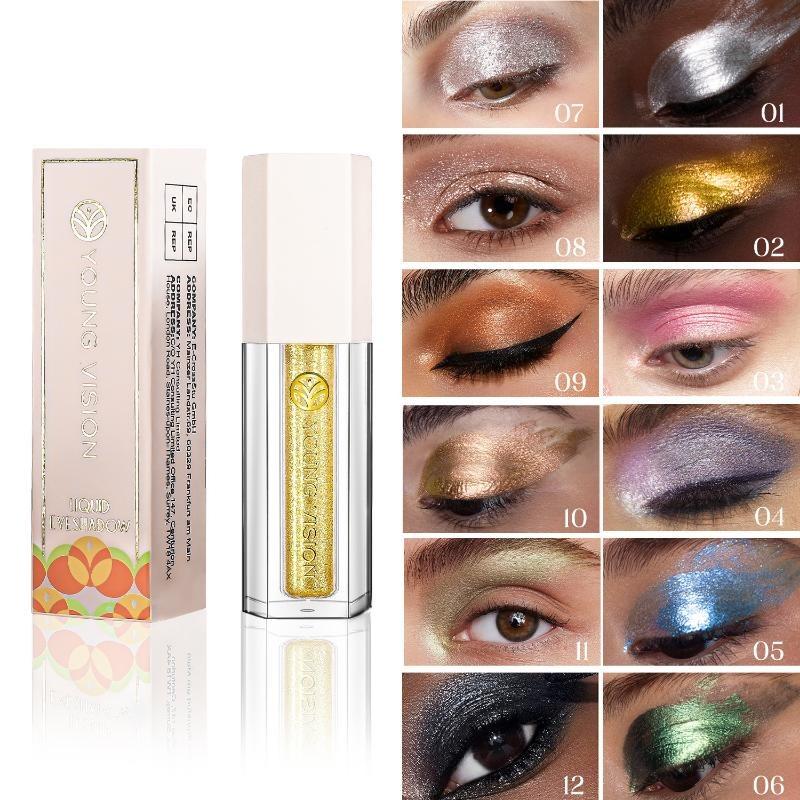12 цветов, жидкие перламутровые тени для век, цветные, струящиеся, легкие, с тонким блеском и ярким светом