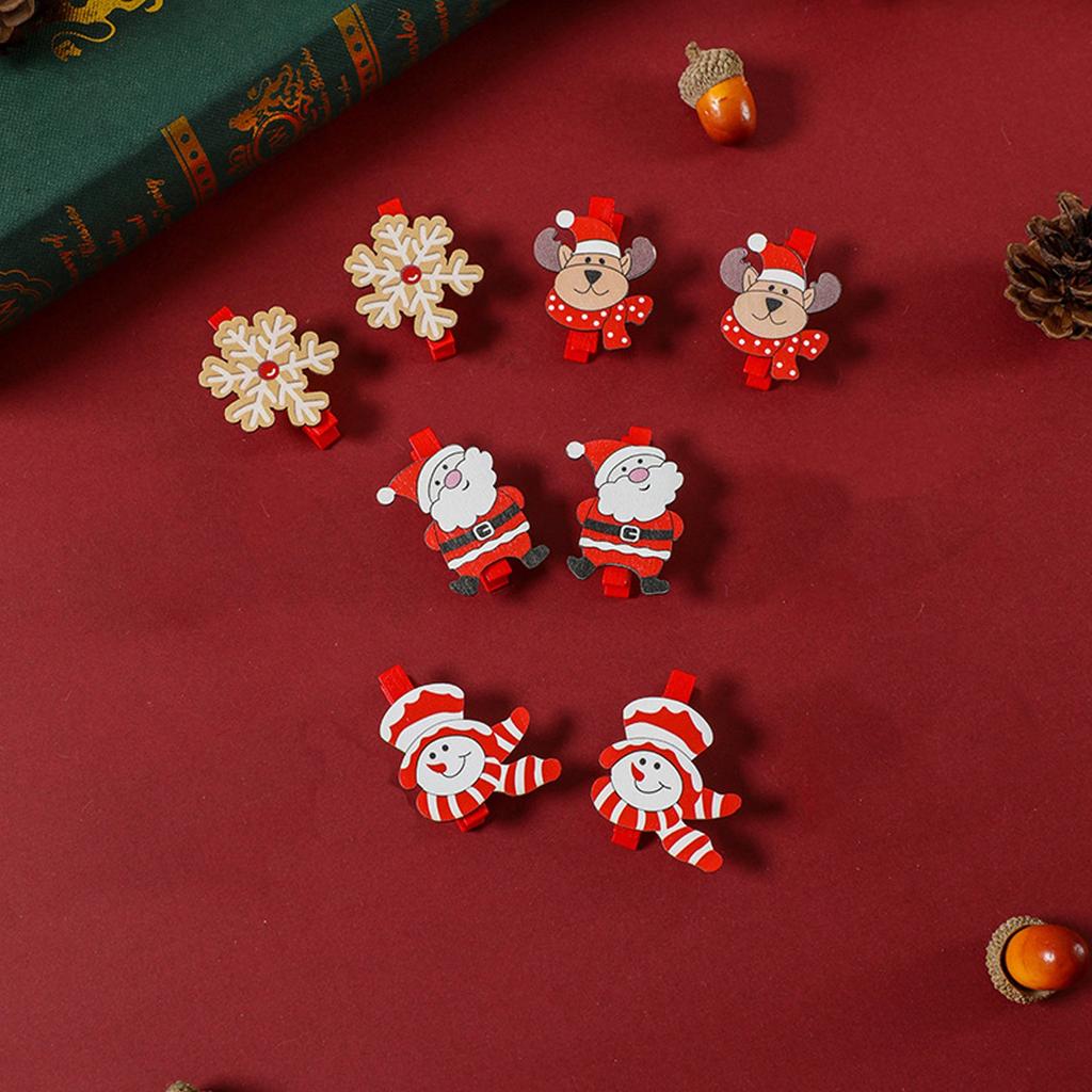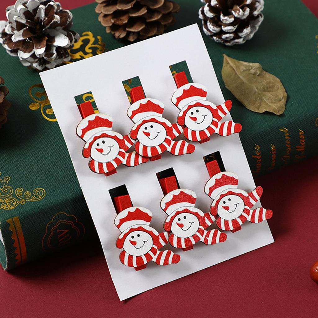 6 штук в упаковке Новые креативные рождественские деревянные мультяшные клипсы, праздничные украшения, принадлежности для вечеринок