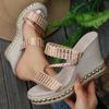 Босоножки на танкетке с золотым плетением, женские летние новые сандалии с заклепками и украшением, сандалии на массивной платформе, женские модные шлепанцы на очень высоком каблуке