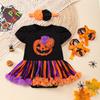 Оранжевые тыквы детские костюмы на Хэллоуин для девочек комплекты одежды для новорожденных кружевной комбинезон Petti детская обувь повязка на голову 3 шт. детская одежда