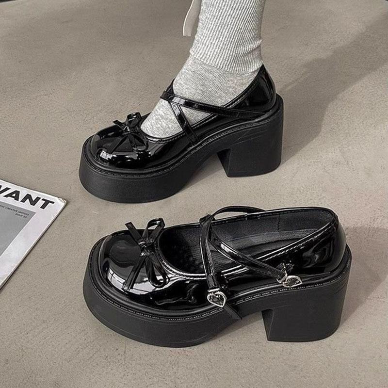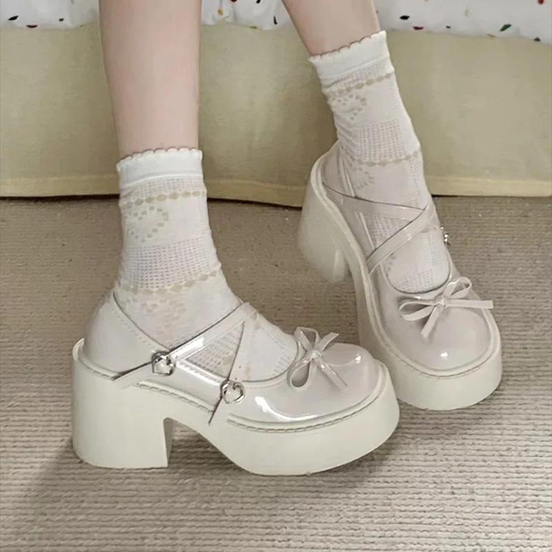 Женские туфли Мэри Джейн на толстом каблуке, весенние туфли-лодочки с круглым носком, туфли на платформе для женщин, женские туфли на каблуке в стиле Лолита