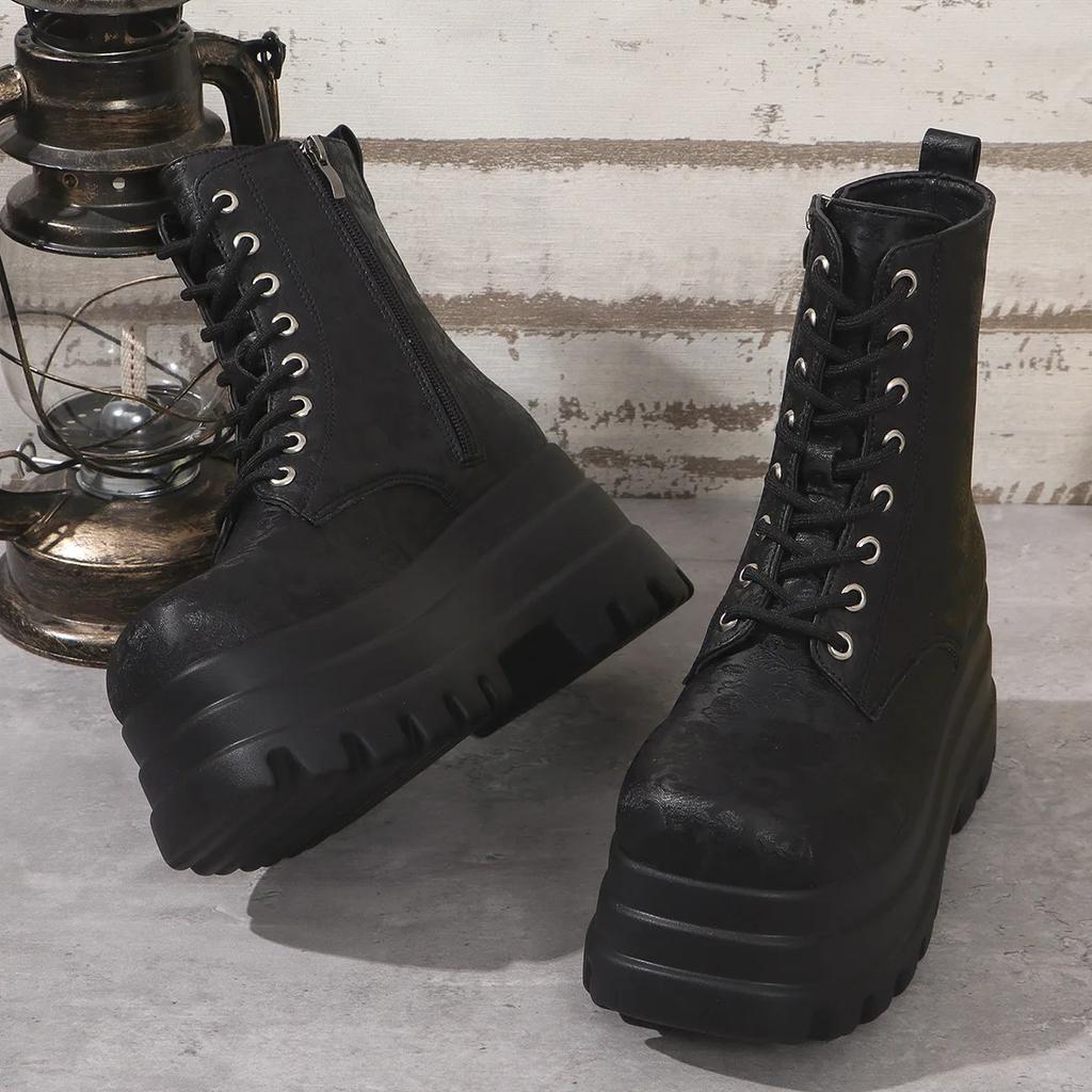 Готические принтованные мотоциклетные ботинки на толстой платформе, осенне-зимняя обувь в стиле панк, модные ботильоны на шнуровке, большой размер