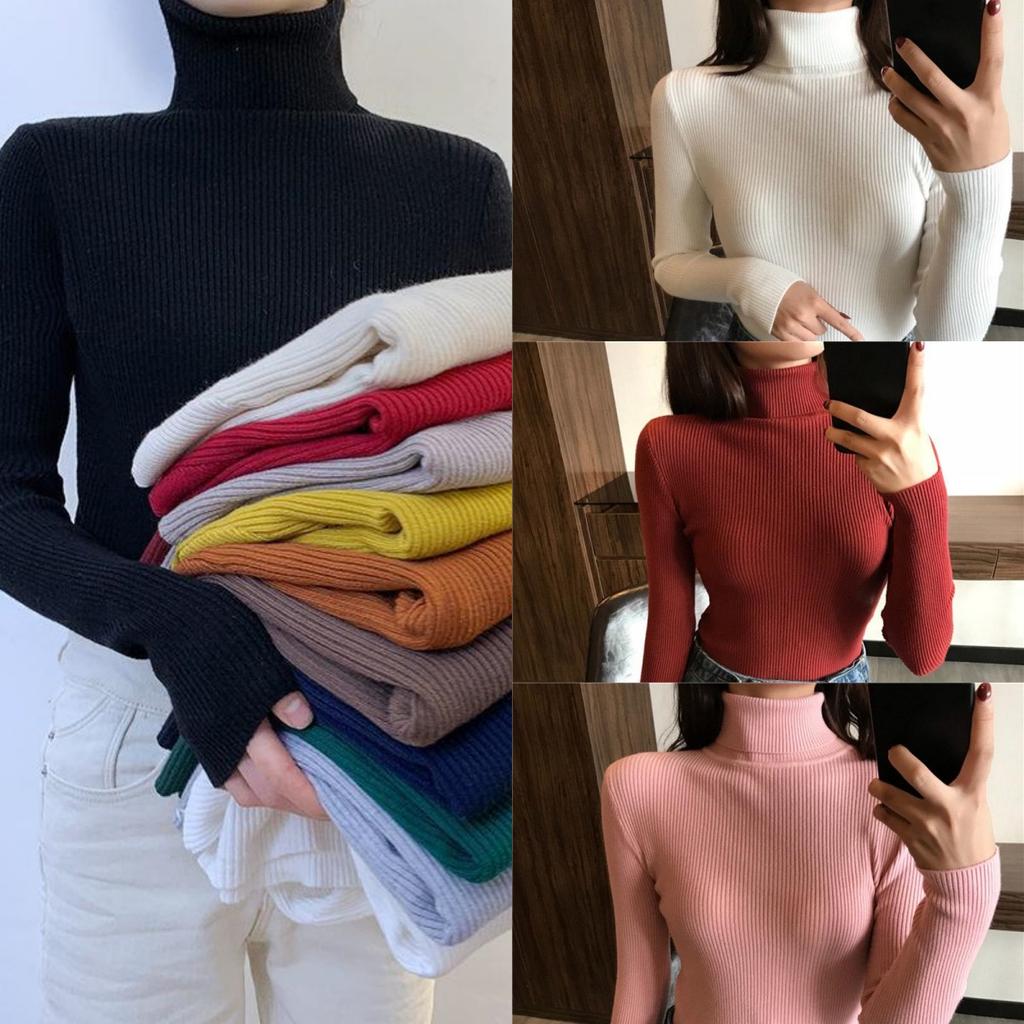 Ребристый пуловер, женский свитер, джемпер, зимняя тонкая водолазка, вязаные свитера, женский мягкий теплый трикотаж с длинными рукавами, свитер