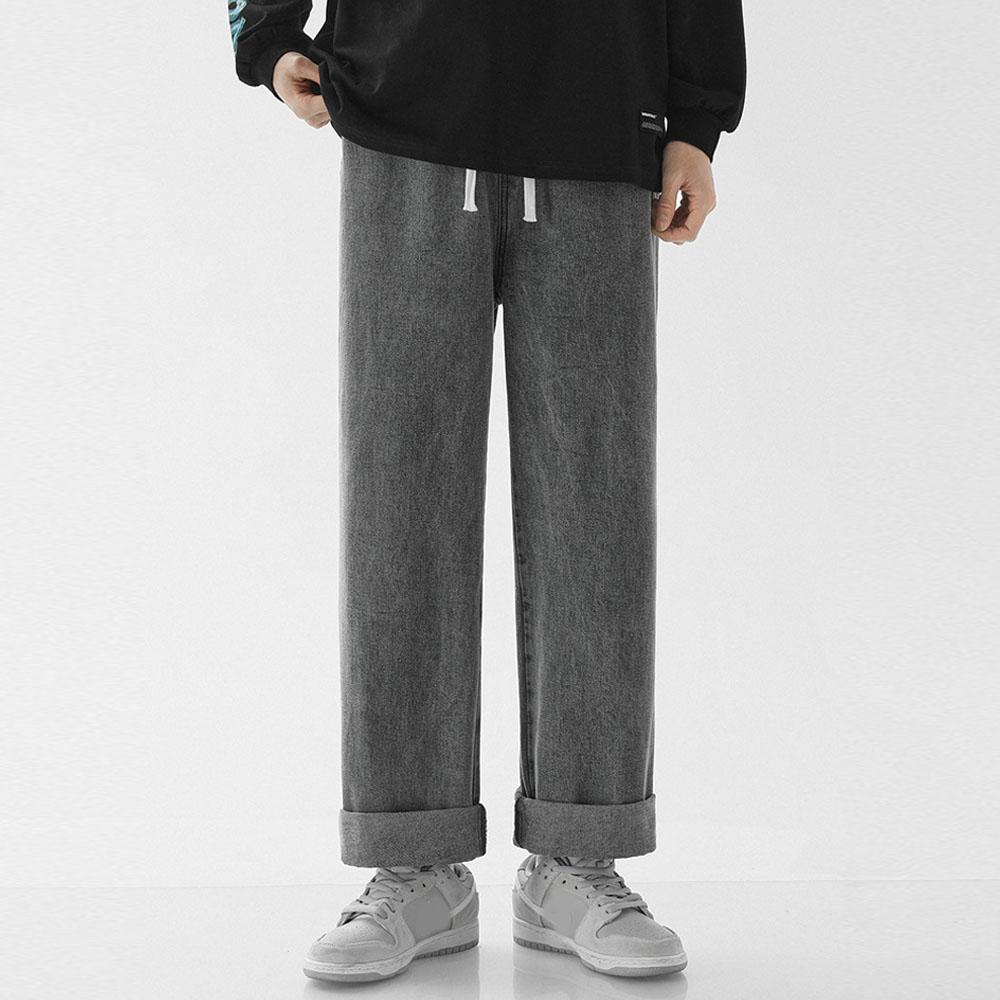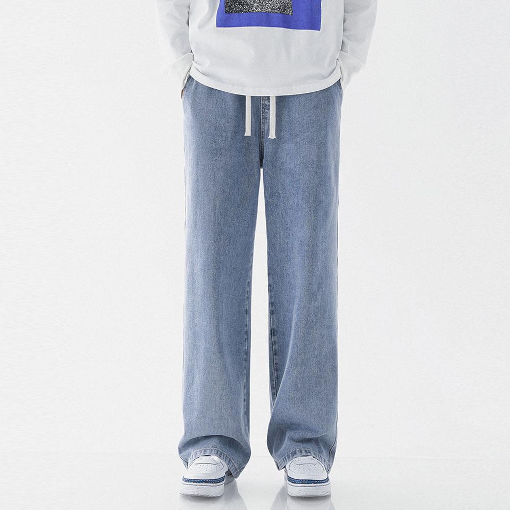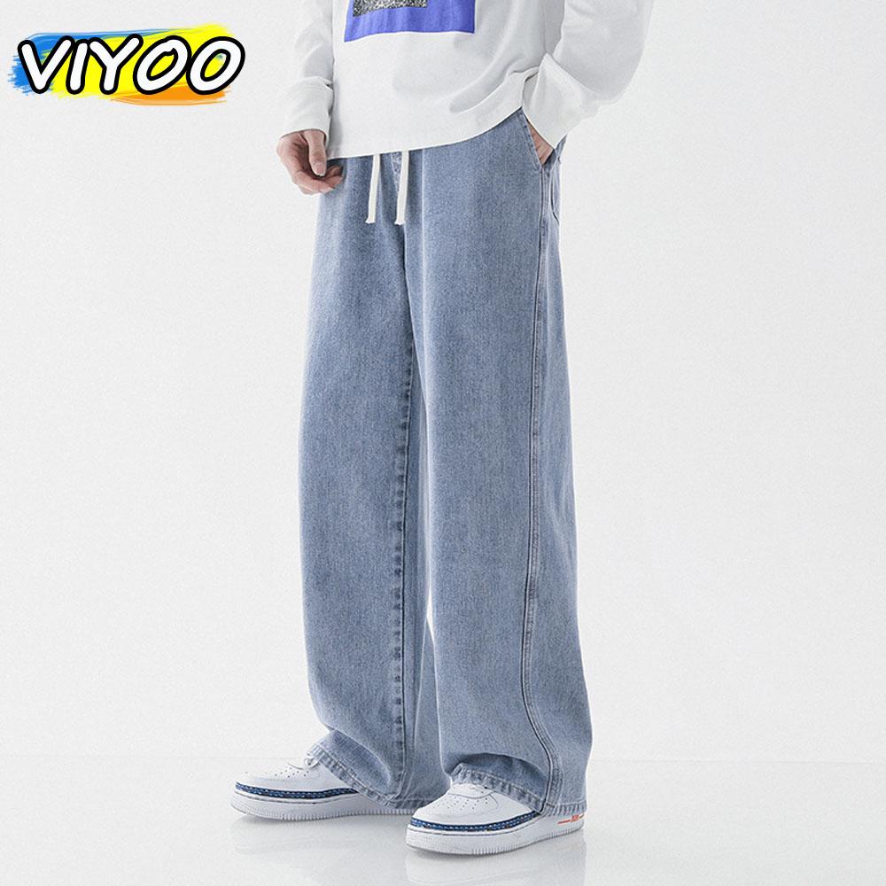 Мужские винтажные ретро-джинсы Y2K, мешковатые джинсы с эластичной талией и шнурком, повседневные широкие брюки для мужчин, уличная модная одежда