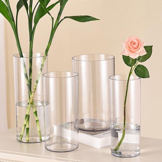 Оптимальная видимость: Цилиндрическая форма обеспечивает отличную видимость для демонстрации цветов и украшений.. Его прозрачная конструкция служит идеальным фоном для креативных экспозиций.