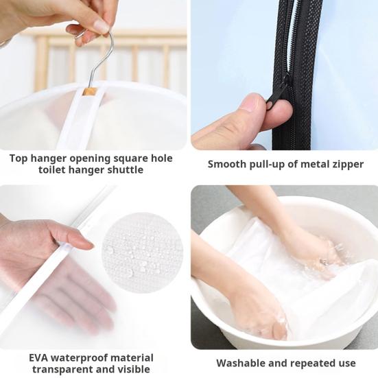Прозрачный материал наших чехлов для одежды позволяет вам идентифицировать свою одежду, не открывая сумку, что упрощает организацию и выбор гардероба.