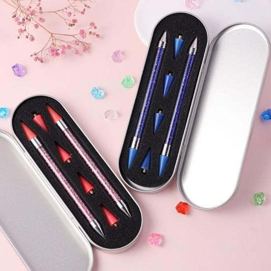 Ручка-пипетка со стразами, оснащенная акриловой ручкой, наполненной стразами, оснащена 2 различными головками для универсальности. Восковой наконечник легко захватывает стразы, а наконечник из нержавеющей стали надежно прижимает их к поверхности ногтя.