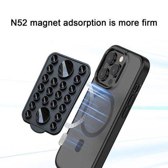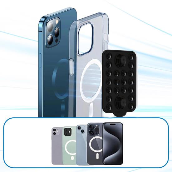 Представляем держатель для телефона на силиконовой присоске — универсальный аксессуар, совместимый с технологией MagSafe.. Этот инновационный держатель для телефона оснащен 22 присосками, которые надежно крепят ваш телефон к различным гладким поверхностям, таким как зеркала, окна, экраны компьютеров, холодильники и плитка.. Наслаждайтесь стабильной видеозаписью и съемкой селфи без помощи рук с помощью больших смартфонов благодаря прочной и надежной конструкции этого держателя для телефона.