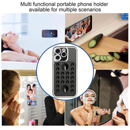 Повышенная стабильность: Этот силиконовый держатель для телефона с 22 присосками обеспечивает устойчивое и надежное крепление к зеркалам, окнам и другим гладким поверхностям, обеспечивая поддержку больших смартфонов без помощи рук во время видеозвонков или съемки селфи.