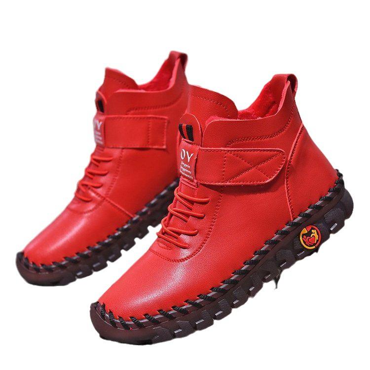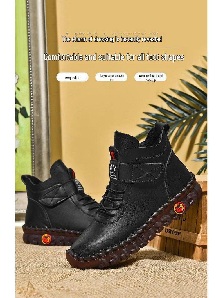 Женские высокие зимние ботинки в британском стиле с бархатной подкладкой для тепла. Застежка-липучка, повседневный дизайн, доступны большие размеры.