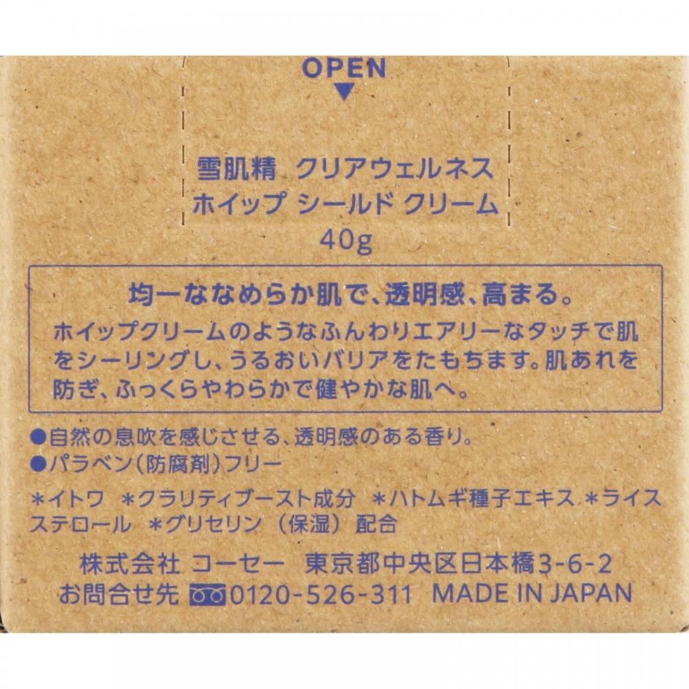 Крем Seikisei Clear Wellness Whip Seal (40г) имеет пушистую, воздушную текстуру, которая обволакивает кожу, обеспечивая увлажнение и питание. Этот крем содержит смесь эффективных ингредиентов, направленных на сохранение мягкости и здоровья кожи.. В состав входят следующие ключевые ингредиенты:: Вода, BG, глицерин, диметикон, этанол и различные растительные экстракты, такие как экстракт плодов сливы, экстракт цветков пиона и другие, делают кожу эластичной и обновленной.