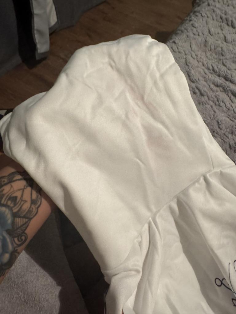 С размером я смог угодать, рисунок яркий. Написано толстовка по факту -гавно. В ней будет тепло когда на улице летом +20.