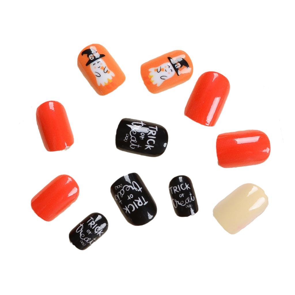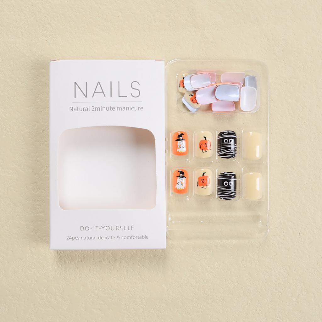 24 шт. очень короткие ногти, накладные ногти на Хэллоуин, красновато-коричневые накладные ногти с узором паука, квадратные накладные ногти с глянцевыми акриловыми ногтями