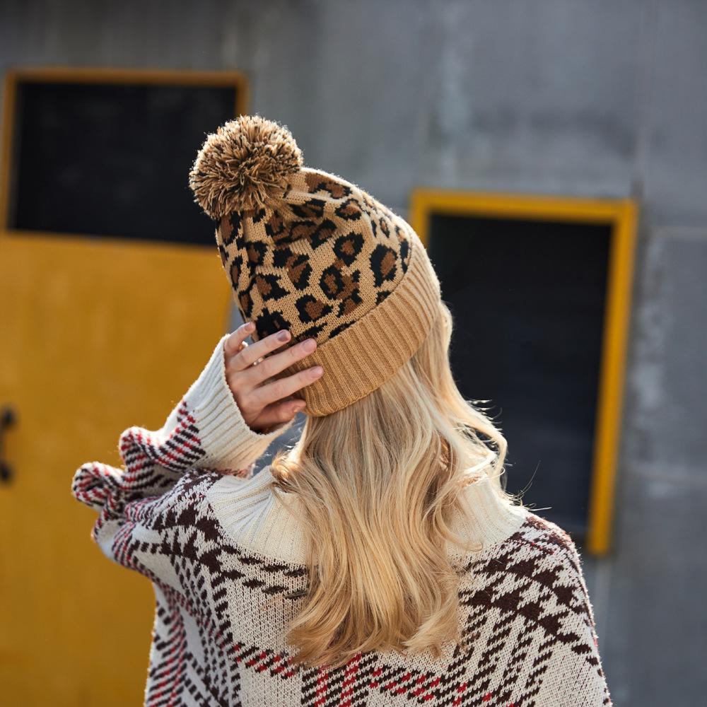Европейская и американская осенне-зимняя шерстяная шапка с леопардовым принтом, европейская женская шерстяная теплая вязаная шапка, простая шапка
