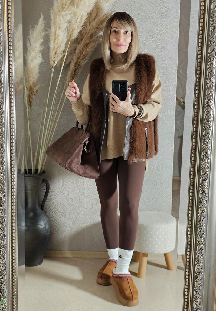 Жилетка из эко-кожи и эко-меха от 21Top 🤗 Все детали смотрите на видео 📽 Жилетка отлчного качества, комфортная, тёплая и уютная 🤗 Но 👆 Она немного другая, чем как нам представляет на промо-фото продавец. Есть предположение, что продавец просто перепутал модель 🤔 У меня нет на эко-кожи впереди контрастных швов и подклад у меня в ромбик а на промо-фото он однотонный. А в целом жилетка отличная. Мех мягкий, хорошей длины, как мне кажется выглядит немного скромнее чем на промо-фото, но в целом неплохо. Эко-кожа хорошего качества, мягкая, тактильно даже похожа на настоящую. Жилетка застегивается на три кнопки, работают отлично. Есть два боковых кармана, средней глубины. Подклад из полиэстера утеплённый пластовым, тонким синтипоном. Жилетка отлично подойдёт на осень или весну. Цвет: коричневый, горький шоколад. Качество пошива отличное, всё ровно и аккуратно, и кстати отсутствует неприятный запах как это обычно бывает у эко-кожи. 💃 Мои параметры 90-65-90см, рост 156см. На мне размер XL. Жилетка села очень комфортно. 📐 Замеры размера XL: ( жилетка в объёме груди больше чем заявлено у продавца) Грудь 108 см, талия 114 см, низ 114 см, ширина плеч 36 см, длина по спинке 60 см. Все ссылки на вещи из обзора и многое другое вы найдёте в моём Телеграм-канале 🔎 Инга Эйбауер или по ссылке ➡️ https://t.me/Ingajoom Ваша Инга 🤗