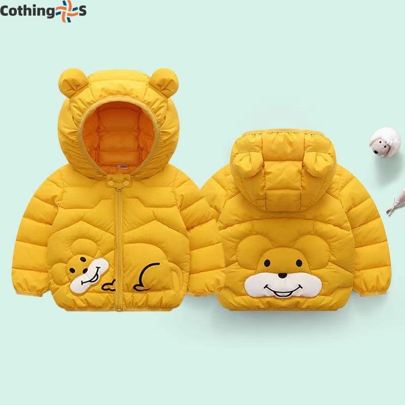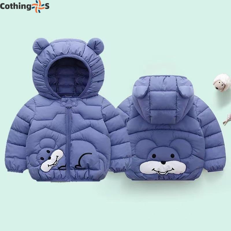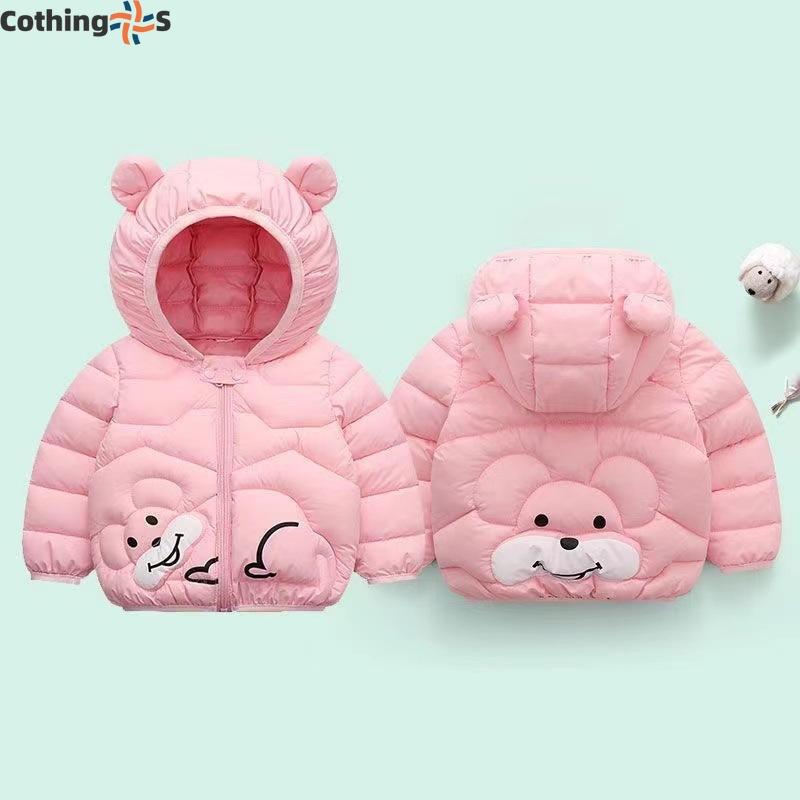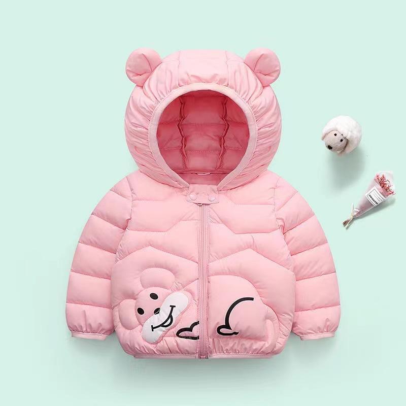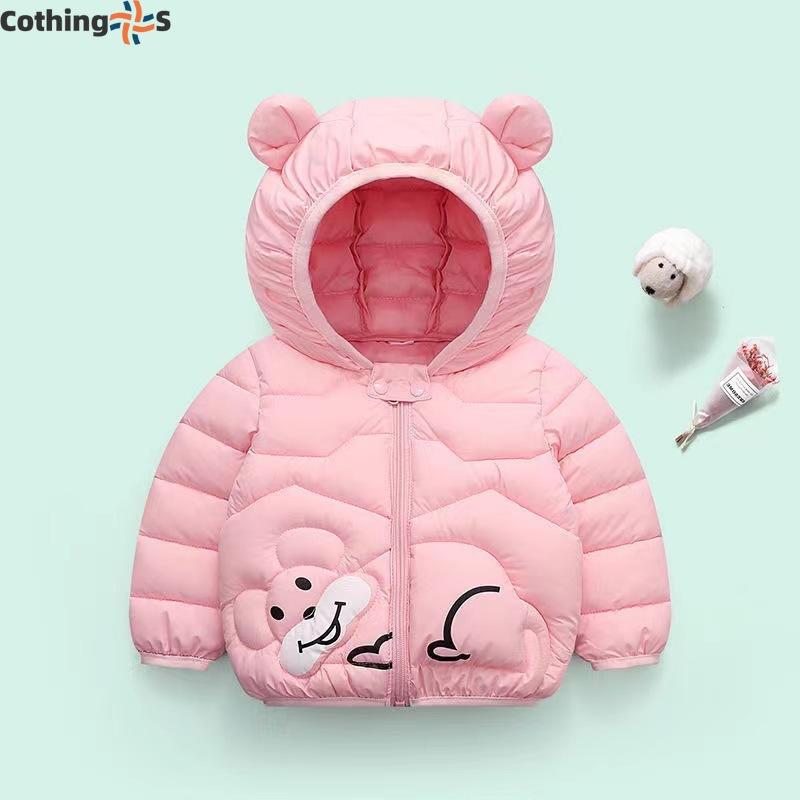 Детская одежда, куртка с капюшоном и ушками для мальчиков и девочек, для маленьких детей, осень и зима, утолщенная куртка с рисунком