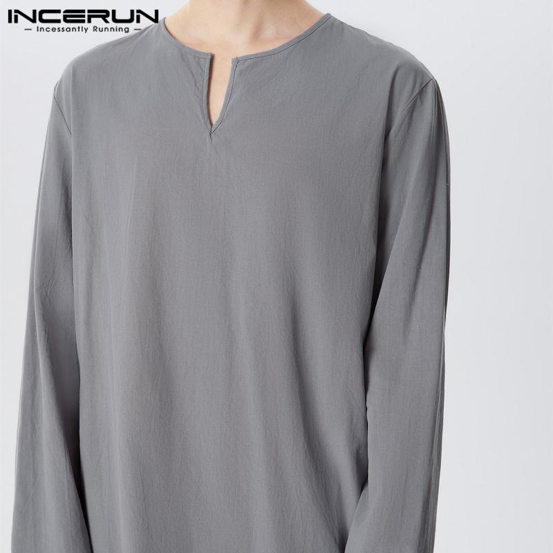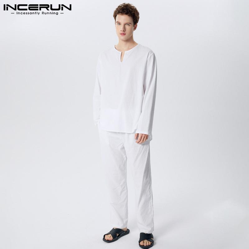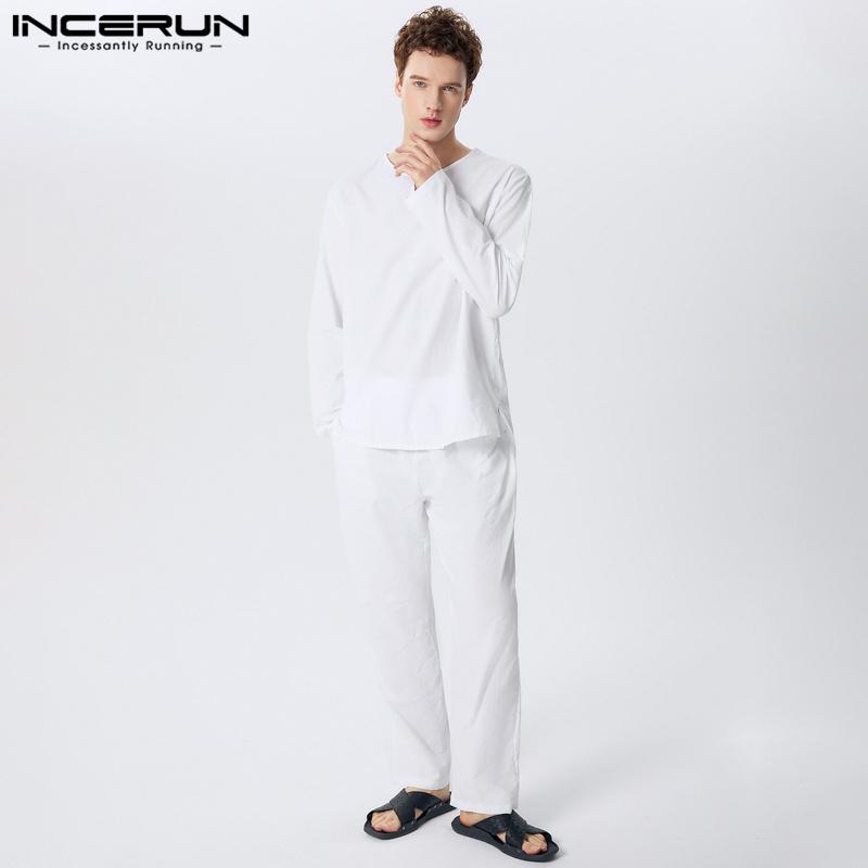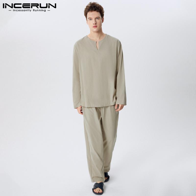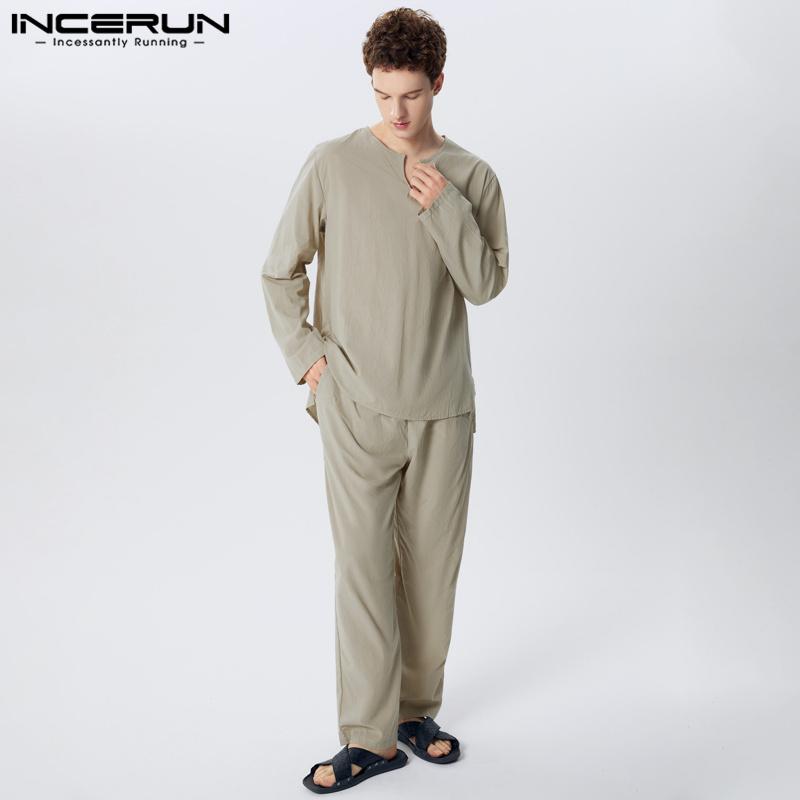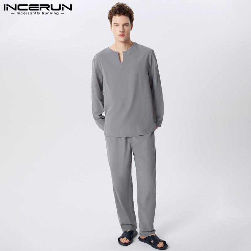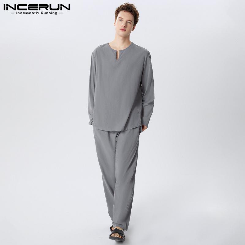 INCERUN Костюм из двух частей для мужчин с длинным рукавом, пижамный костюм, домашняя одежда, комплекты