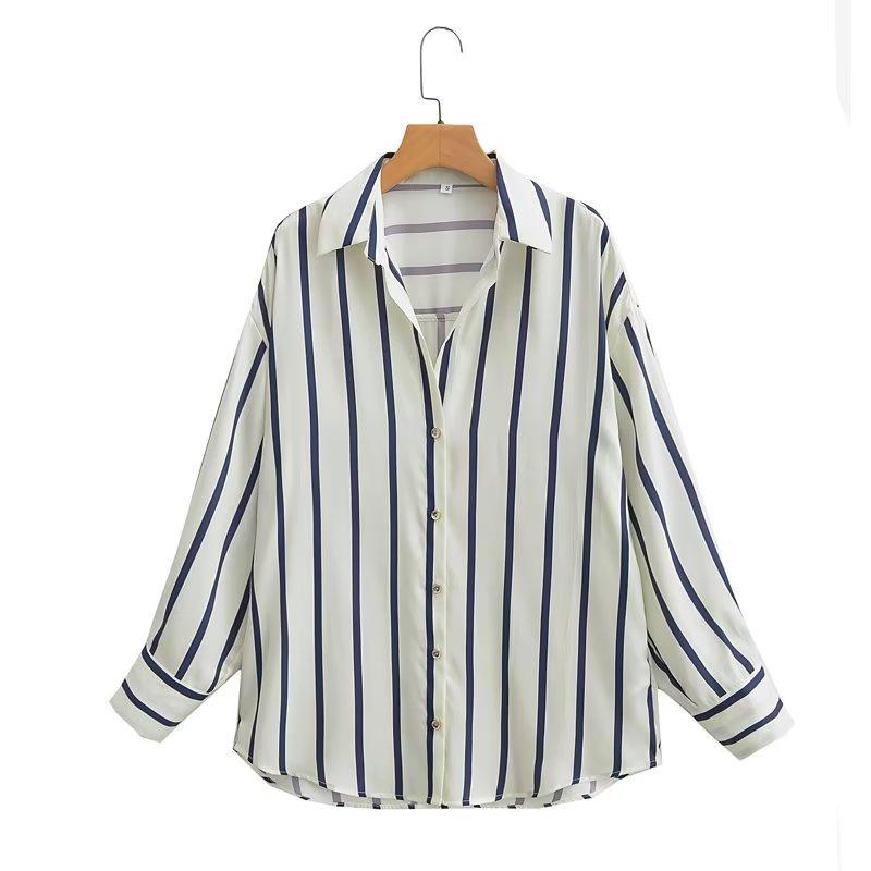 Женские блузки весна-осень полосатая свободная фактура принтованная рубашка