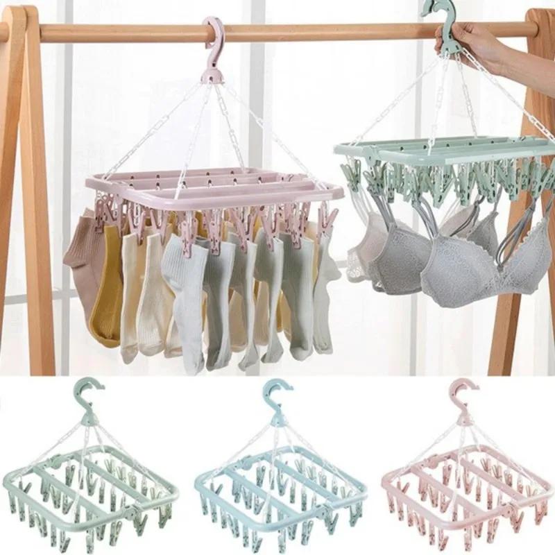 Вешалка для сушки одежды с 32 зажимами/8 зажимами для носков, сушка нижнего белья, складная вешалка для белья