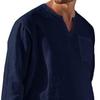 Модная мужская повседневная пляжная льняная рубашка с длинным рукавом и V-образным вырезом, мужские топы