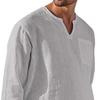 Модная мужская повседневная пляжная льняная рубашка с длинным рукавом и V-образным вырезом, мужские топы — купить товар онлайн с бесплатной доставкой по всему миру!