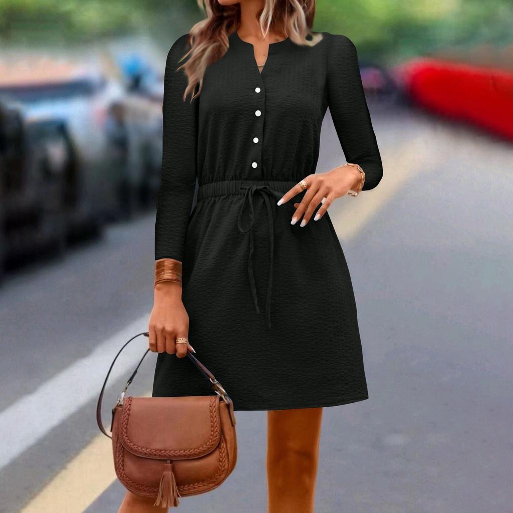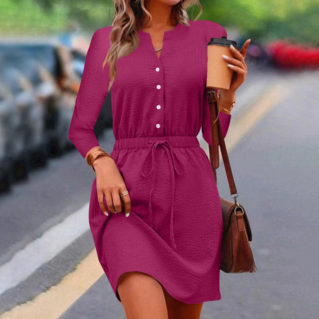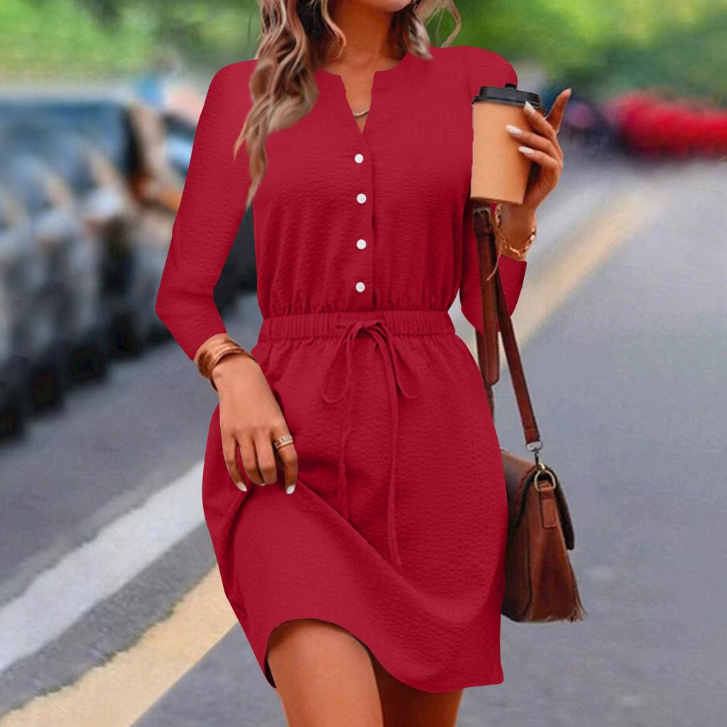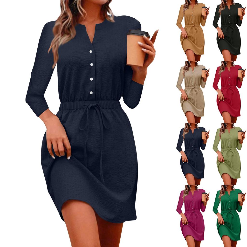 Женское повседневное платье с v-образным вырезом и рукавами семь четвертей, обтягивающее талию, с завязками на талии