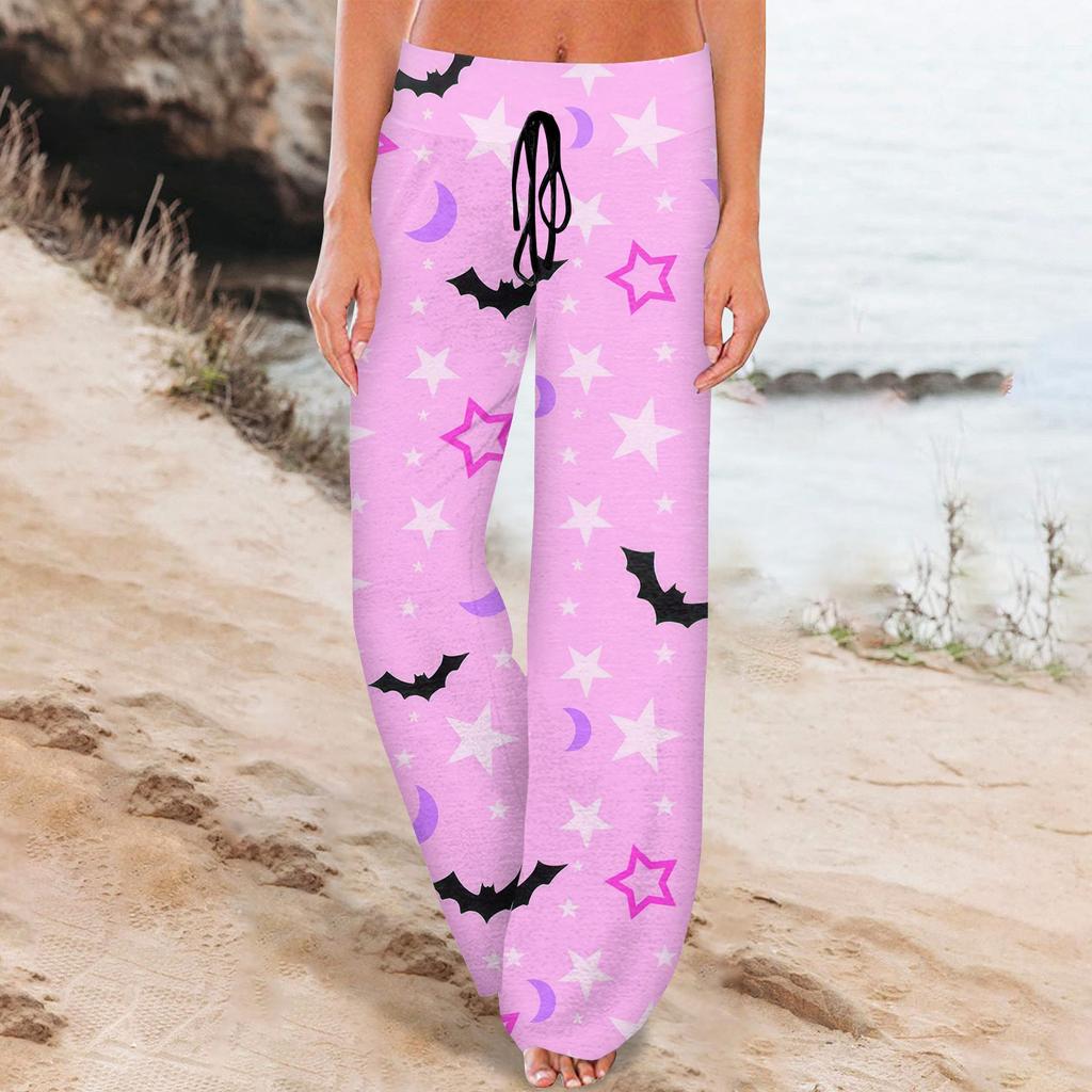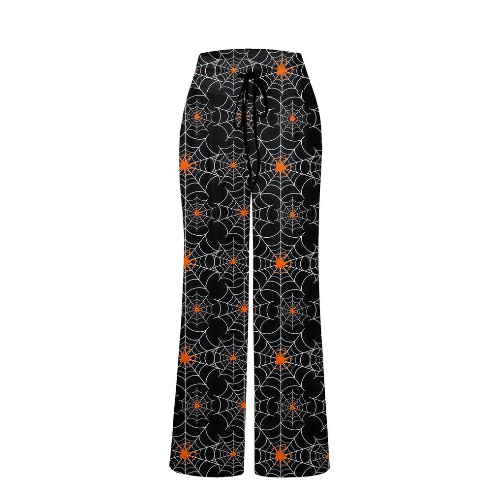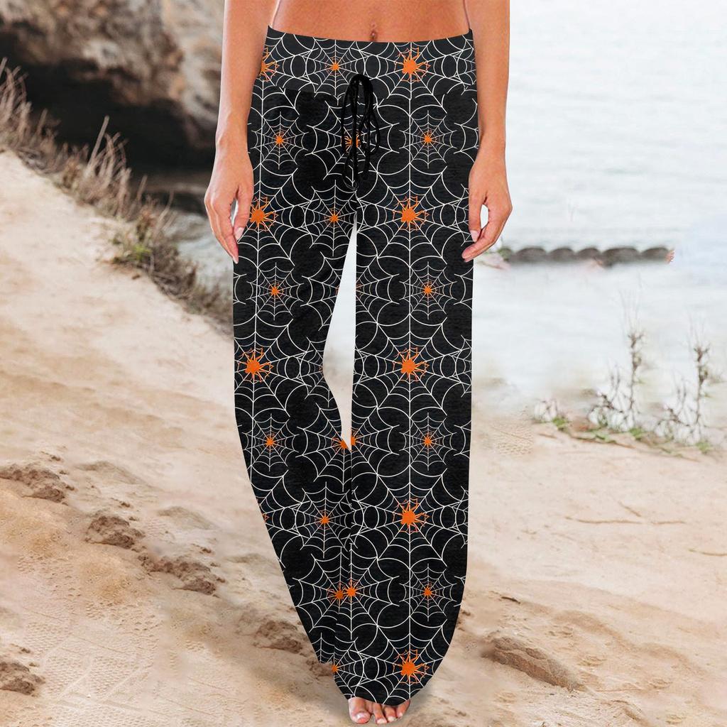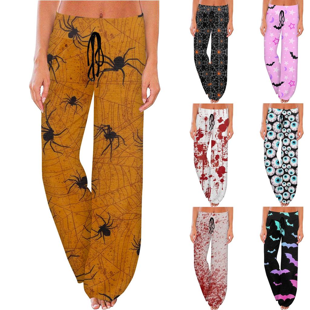 Женские удобные пижамные штаны с карманами на Хэллоуин и принтом на шнуровке, широкие брюки
