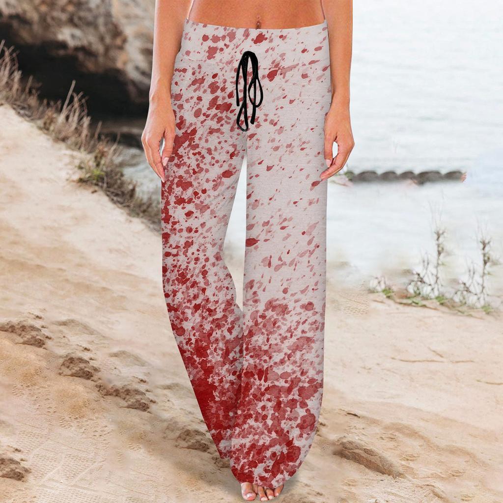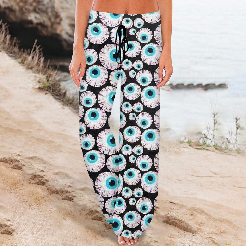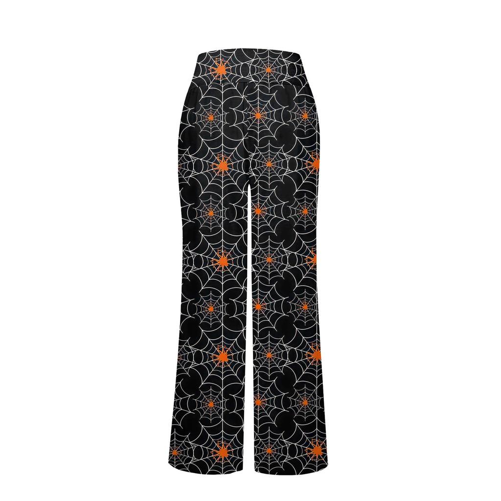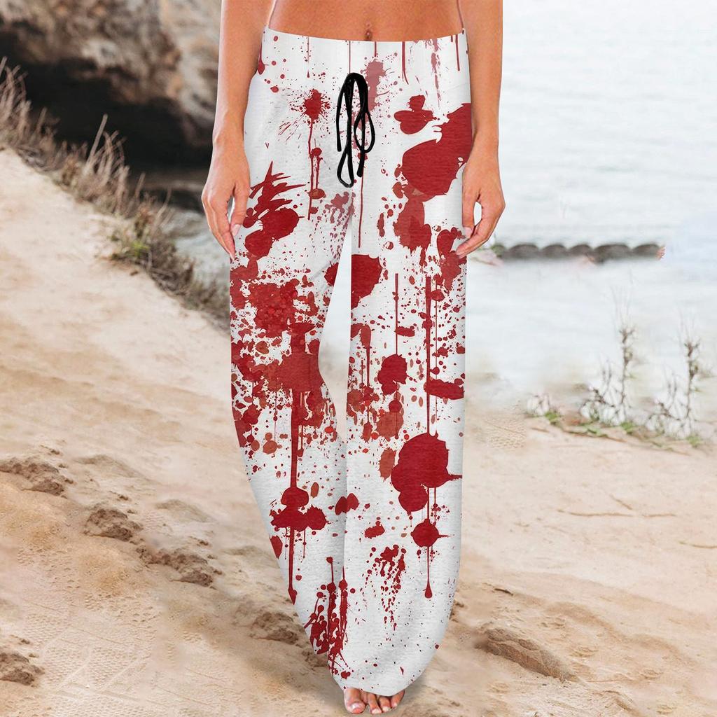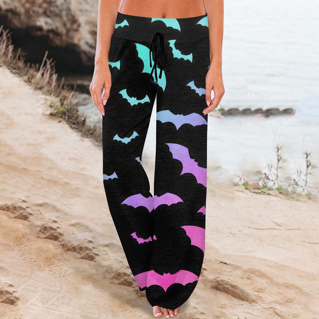Женские удобные пижамные штаны с карманами на Хэллоуин и принтом на шнуровке, широкие брюки