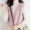 Вязаный жилет женский с рубашкой однотонный свитер с V-образным вырезом свободный пуловер повседневный камзол на осень женский жилет