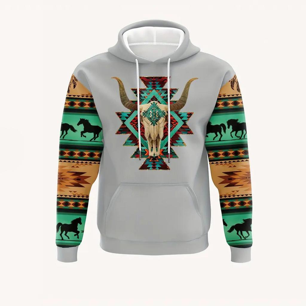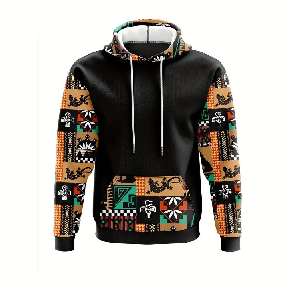 Осенняя мужская толстовка с длинным рукавом с этническим рисунком, уличный пуловер, модная толстовка с капюшоном, мужская толстовка с капюшоном, свободная одежда