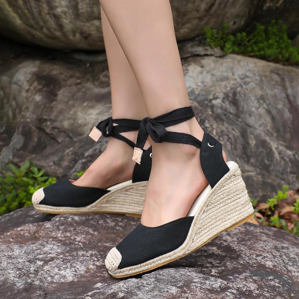 Лето 2021 Женские босоножки на танкетке с закрытым носком