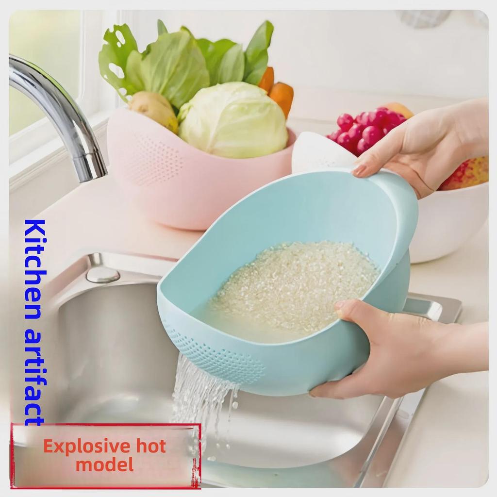 Многофункциональная тазовая решетка с мелкими отверстиями для мытья риса и сливной корзиной для кухни, фруктов и овощей.