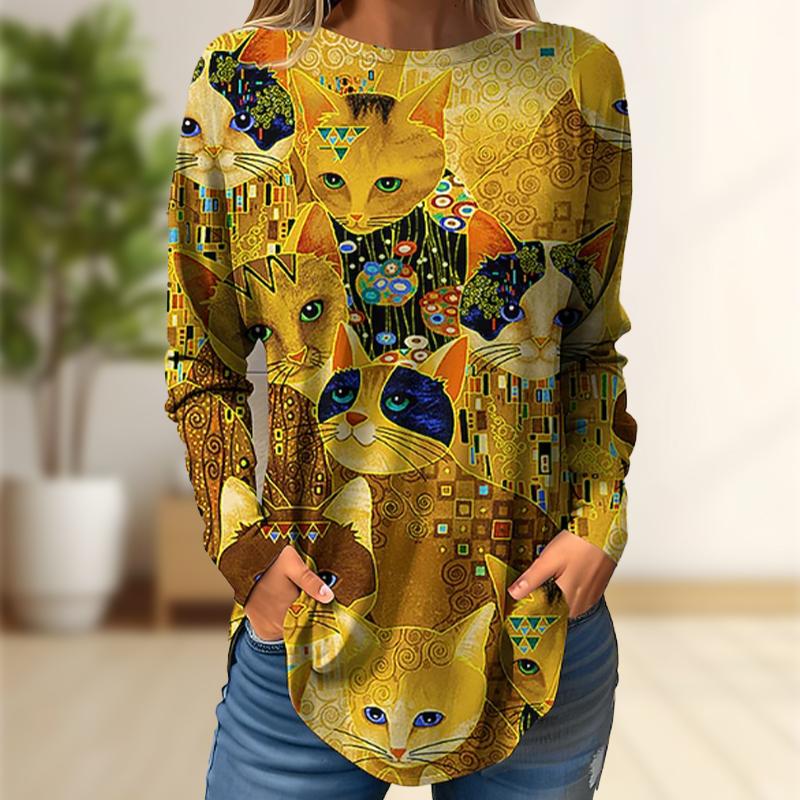 Топы для женщин с принтом «Снежная сова», круглый вырез, длинный рукав, футболка, осенний повседневный тонкий пуловер, женский топ с длинным рукавом