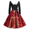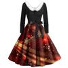 Женское винтажное платье с длинным рукавом и рождественским принтом в стиле 1950-х годов для вечеринки, выпускного вечера, для домохозяйки