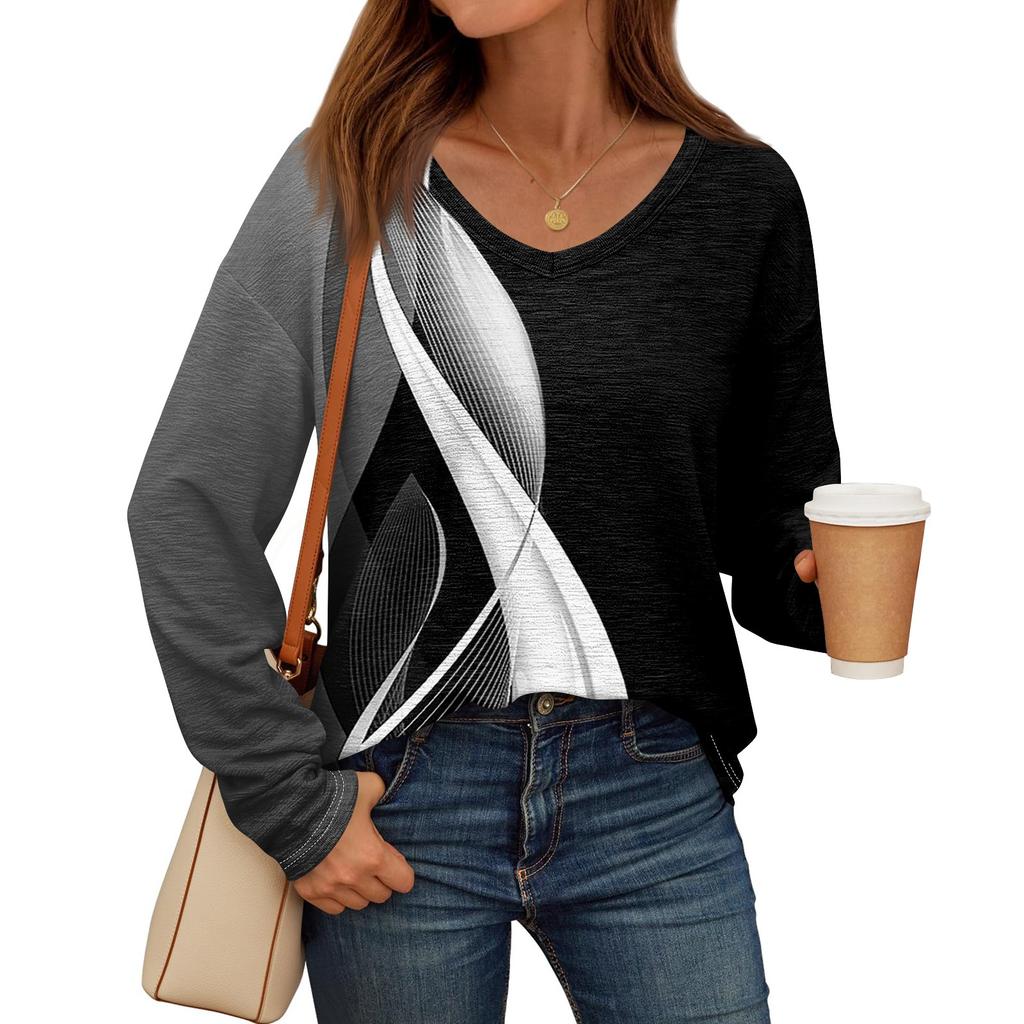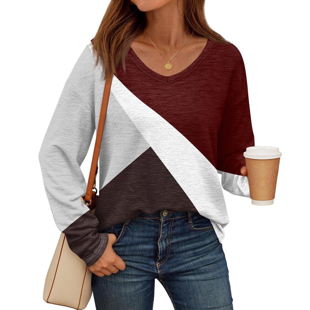 Женские рубашки с длинным рукавом и V-образным вырезом, базовая футболка, повседневный топ, осенняя модная туника, облегающие футболки
