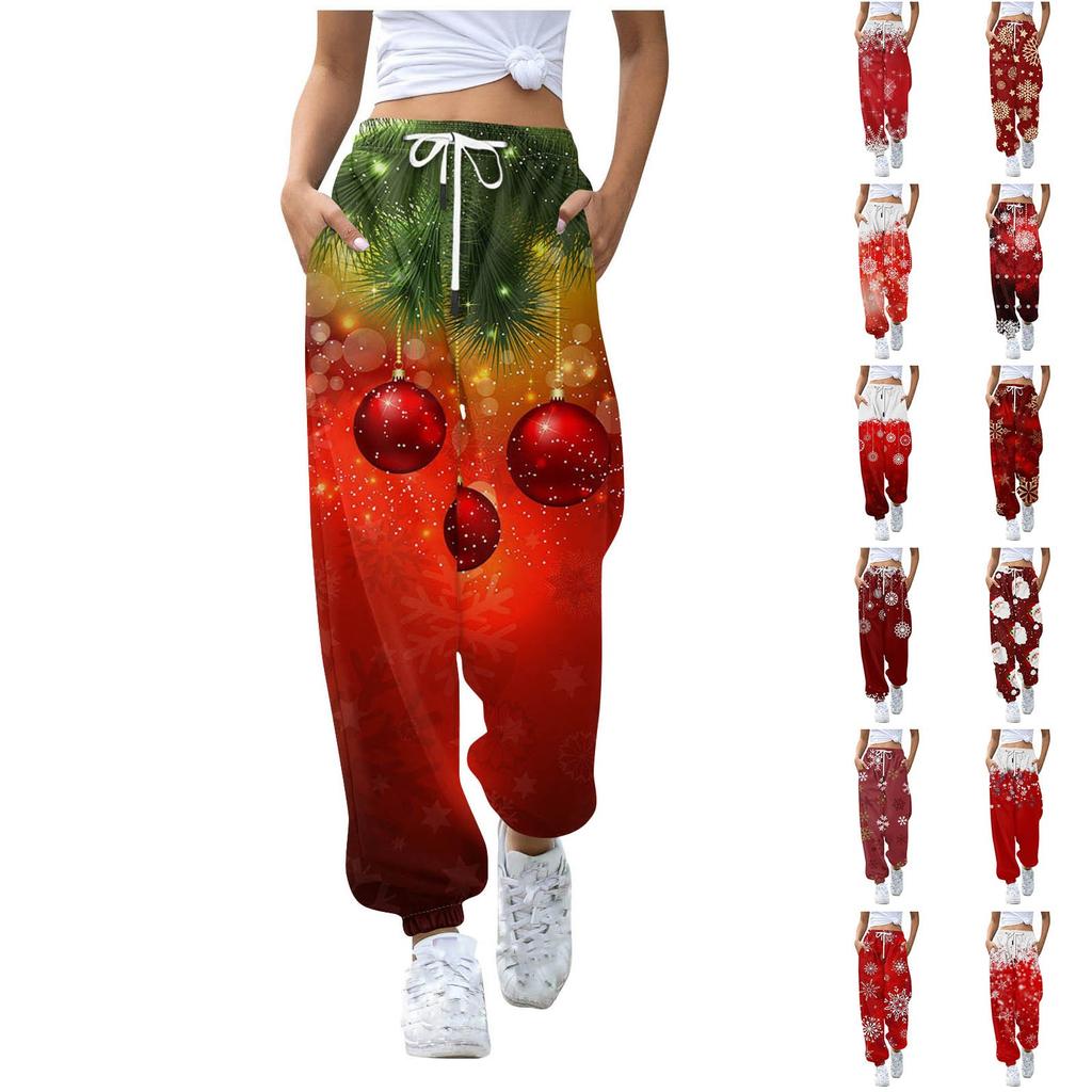 Женские повседневные брюки для отдыха с рождественским принтом, спортивные брюки, брюки с эластичной резинкой на талии, брюки с завязками на шнурке — купить товар онлайн с бесплатной доставкой по всему миру!