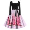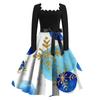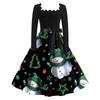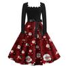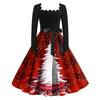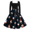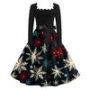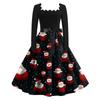 Женские повседневные модные платья с длинными рукавами и рождественским принтом с квадратным вырезом в винтажном стиле